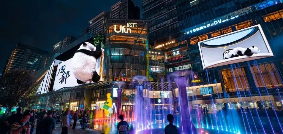 數字化浪潮來襲,數字裸眼大熊貓驚艷亮相成都高新區交子商圈,高達20余米的大熊貓在邁銳光電制造的巨型LED屏幕上栩栩如生。