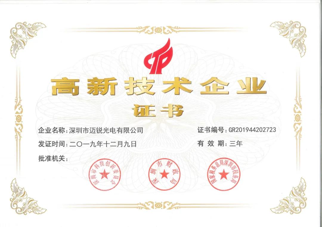 近日,公司也收到了由深圳市科技創(chuàng)新委員會(huì)、深圳市財(cái)政局、國家稅務(wù)總局深圳市稅務(wù)局聯(lián)合頒發(fā)的“高新技術(shù)企業(yè)”認(rèn)定證書。
