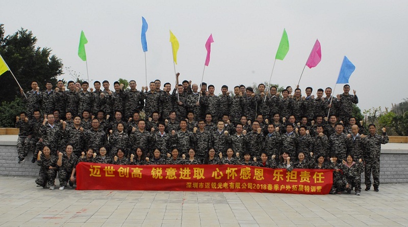 為進一步加強團隊建設,有效培養團隊精神,增強團隊凝聚力、執行力和團隊協作能力,邁銳光電于1月26日在惠州開展主題為“邁世創高,銳意進取,心懷感恩,樂擔責任”的2018春季戶外拓展培訓,公司近百名員工參加了此次拓展活動。