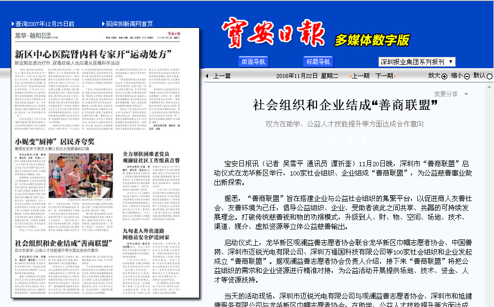 寶安日?qǐng)?bào)訊(記者 吳雪平 通訊員 譚祈奎)11月20日晚,深圳市“善商聯(lián)盟”啟動(dòng)儀式在龍華新區(qū)舉行,100家社會(huì)組織、企業(yè)組成“善商聯(lián)盟”,為公益慈善事業(yè)做出新探索。