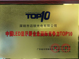 篳路藍縷,披星戴月,崢嶸十年,昂首闊步,邁銳光電從最初2006年注冊資產只有100萬元,一躍發展成LED行業巨子,2012年銷售額超過5個億,2014年7月,邁銳光電注冊資金增加至1億。2015年6月,獲評“年度中國最具行業競爭力LED顯示屏企業TOP10”榮譽。2016年6月8日,邁銳光電再度榮膺“中國LED顯示屏企業國際競爭力TOP10”。高瞻遠矚,永不止步,邁銳光電國際化集團的步伐邁得越來越堅定。