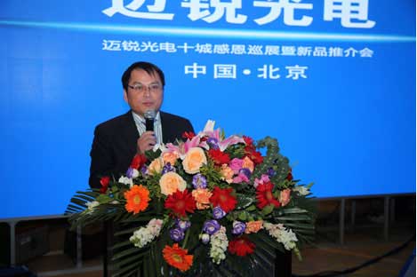邁銳光電總經理陳澤波首先發表致辭,對到場的來賓表示熱烈歡迎及誠摯的謝意。他表示,回首十年,邁銳光電從OEM到創立自主品牌,一路高歌猛進到擴大規模資金受阻,再到牽手福日,投產惠州邁銳工業園,一步一個腳印,走得艱辛卻也堅定,最終走出一條屬于邁銳光電的康莊大道,他感到非常欣慰。