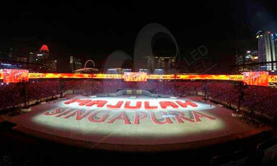 此前,該系列的戶外屏F10也曾被應用在新加坡獨立50周年的慶典上,舞臺搭建面積達2700㎡,屏體環繞整個廣場,場面盛大,氣勢恢宏。