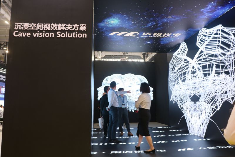 開展期間,邁銳光電沉浸式空間視效解決方案、高清裸眼3D解決方案、8K超高清數據可視化解決方案、智慧會議一體化解決方案四大前沿解決方案亮相ISLE 2023盛會現場,吸引了眾多觀眾紛紛駐足觀看,一舉成為本次展會的熱門聚焦地。