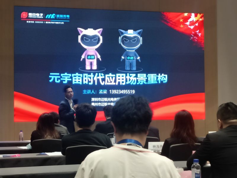 展會現場,邁銳光電受邀參與了業績榜主辦的【2023碳中和與元宇宙雙輪驅動大屏智顯行業高質量發展高峰論壇】,由邁銳光電營銷中心總監孟梁先生發布演講。他表示,邁銳光電的元宇宙布局,立足于相關政策的支持與商貿創意、工業文旅、教育培訓等應用場景的新型顯示需求,以產品技術+創意內容賦能多種元宇宙場景應用,從而實現為客戶創造更大價值,解決客戶關鍵痛點的目標。