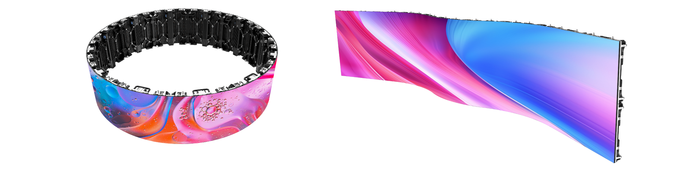 支持弧形安裝,最大角度:±30°,單個箱體可以實現完美的“S”曲線,具有超高的靈活度,無論是大角度的內外弧造型,還是圓柱、90°圓弧直角造型都能輕松打造,多種創意拼接配合不同場景使用。
