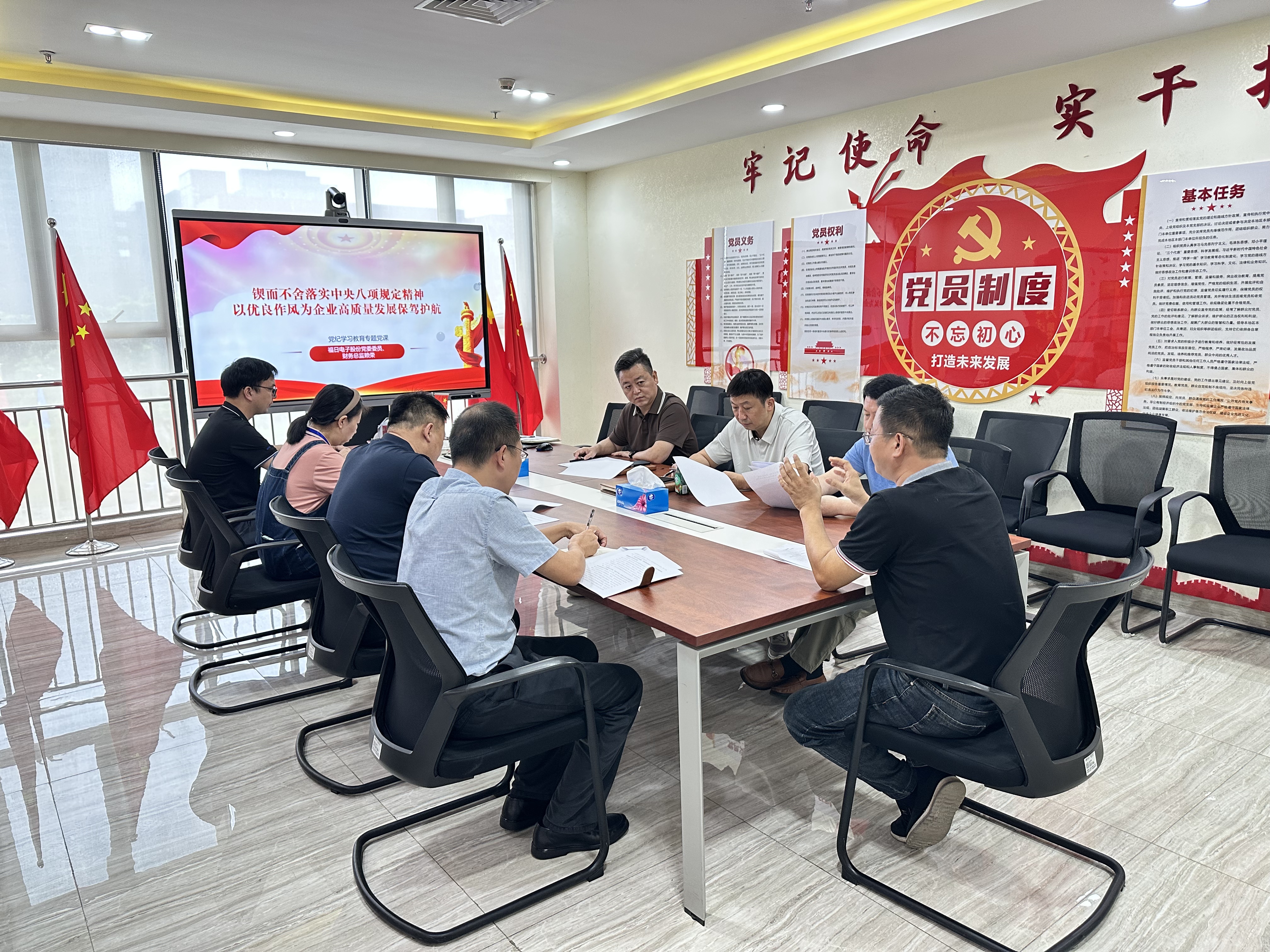 根據深入貫徹中央八項規定精神學習教育要求和福日電子黨委2025年度“四下基層”安排,福日電子黨委委員、財務總監賴榮下基層為邁銳光電黨支部,經營班子成員講授專題黨課,“鍥而不舍落實中央八項規定精神,以優良作風為企業高質量發展保駕護航”為主題作交流。